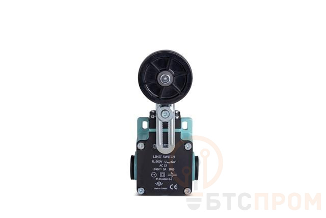 Выключатель концевой быстрого переключения угловой 2-х направленный с пластмас. консолью и резиновым роликом Ф50мм (1НО+1НЗ) EMAS L2K13MEL122