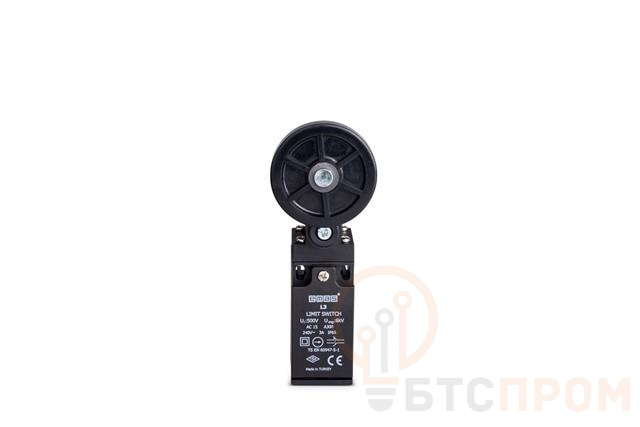 Выключатель концевой быстрого переключения угловой 2-х направленный с пластмас. консолью и резиновым роликом Ф50мм (1НО+1НЗ) EMAS L3K13MEL121