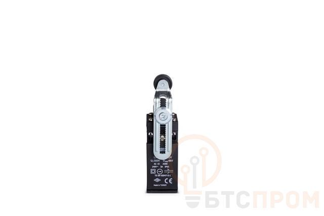 Выключатель концевой быстрого переключения угловой 2-направленный с пластмас. консолью. роликом Ф18мм на регулируемом изогнутым рычаге (1НО+1НЗ) EMAS L3K13MEP124