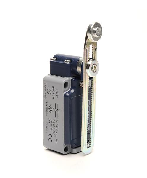 Выключатель концевой быстрого переключения угловой 2-направленный с пластмас. консолью стальным роликом Ф18мм на регулируемом рычаге (1НО+1НЗ) EMAS L52K13MEM123