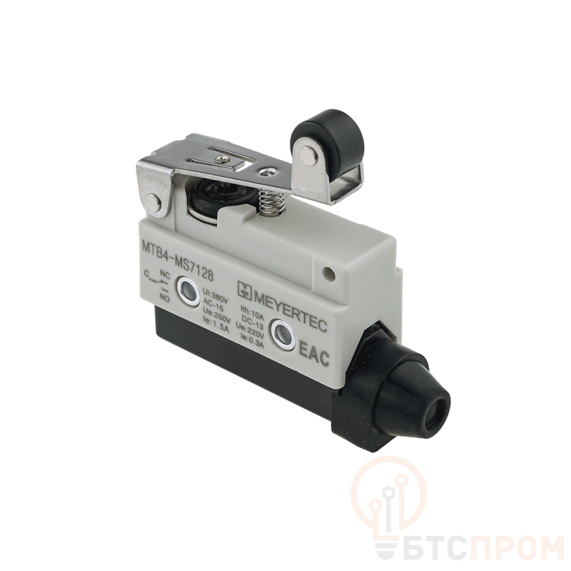 Ключевой особенностью данного выключателя является комбинированная контактная группа: один нормально разомкнутый (NO) и один нормально замкнутый (NC) контакт. Это позволяет гибко интегрировать его в различные схемы управления. Укороченный рычаг с роликом обеспечивает четкое и точное срабатывание при воздействии на управляющий элемент.