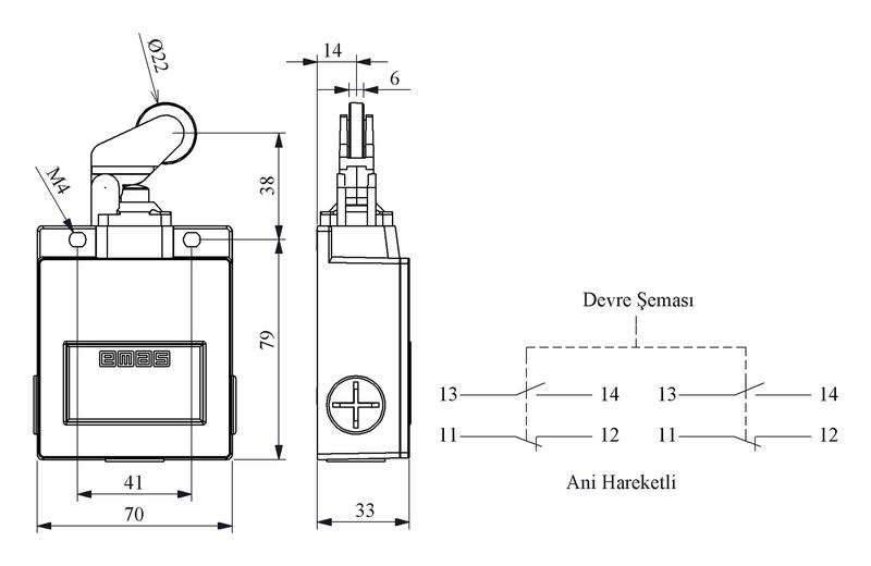 –Выключатель концевой однонаправленный ролик 2НО+2НЗ EMAS L54K16MIP211