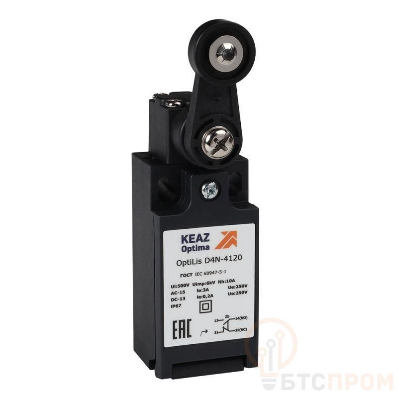 Выключатель концевой OptiLiS D4N-4120 рычаг пластик. с роликом пластик. EN 50047 XCKN2118P20 КЭАЗ 365306