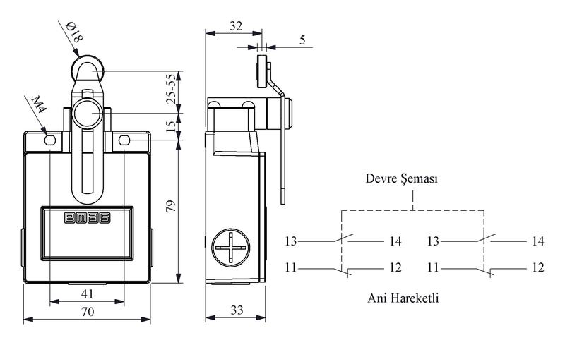 –Выключатель концевой реверсивный ролик 2НО+2НЗ EMAS L54K16MEM124