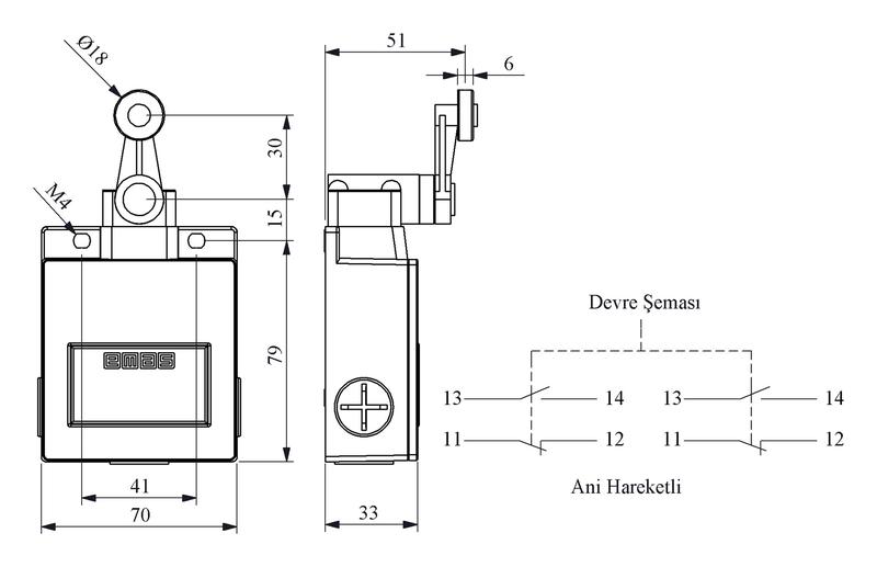 –Выключатель концевой реверсивный ролик 2НО+2НЗ EMAS L54K16MEP121