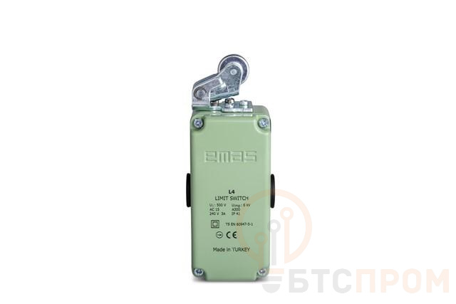 Выключатель концевой угловой 1-но направленный со стальной консолью и роликом Ф22мм (2НО+2НЗ) EMAS L4K16MIM111