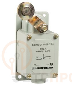 Выключатель концевой ВК-200-БР-11-67У2-14 рычаг с роликом без сальника ход влево без самовозврата ступень 1-41мм IP67 Электротехник ET518122