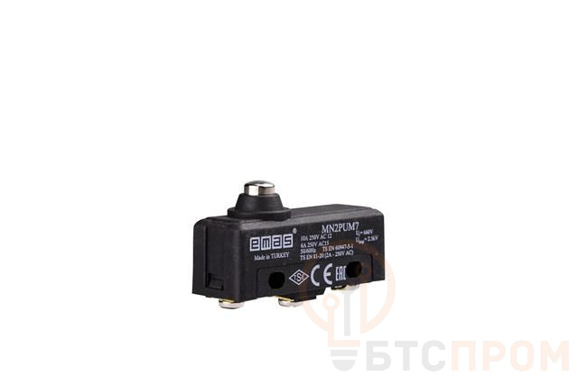 Мини-выключатель с коротким подпружиненным плунжером. Механическая стойкость : не менее 500 000 операций. Электрическая стойкость : не менее 100 000 операций. Рабочая температура : T125. Максимальная частота включений : 60 механических операций в минуту, 30 электрических операций в минуту. Номинальное напряжение, Ue : 440 В перем. тока. Номинальный ток, Ie : 10 А. Сопротивление изоляции : не менее 10 МОм (500 В пост. тока). Сопротивление контактов : не более 15 МОм. Диэлектрическое сопротивление : 1500 В перем. тока (1 минута). Влажность : не более 80% Стандарты : TS 1472 EN 61058-1
