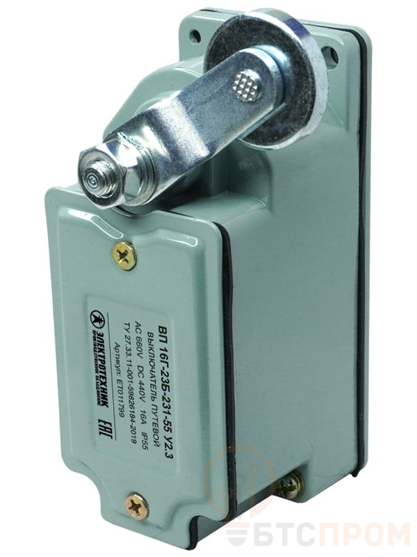 Выключатель путевой ВП 16Г-23Б-231-55 У2.3 1НО+1НЗ IP55 рычаг с роликом без сальника ход влево самовозврат Электротехник ET011799