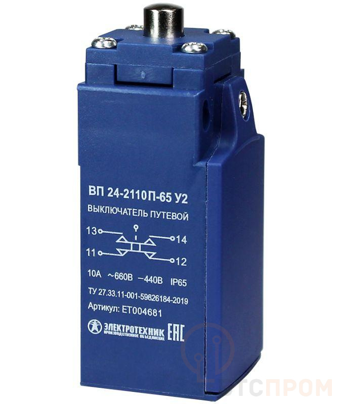 Выключатель путевой ВП 24-2110П-65 У2 1НО+1НЗ 3А IP65 толкатель безинерционный 20мм без сальника Электротехник ET004681