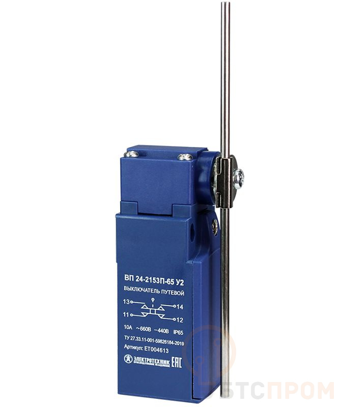 Выключатель путевой ВП 24-2153П-65 У2 1НО+1НЗ 3А IP65 круглый стальной рычаг 20мм без сальника Электротехник ET004613
