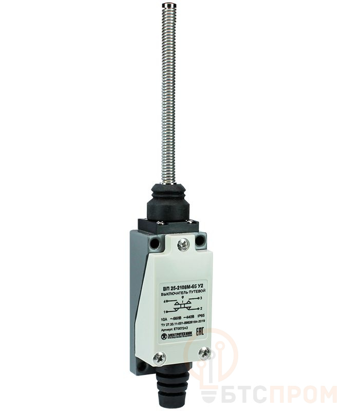 Выключатель путевой ВП 25-2108М-65 У2 1НО+1НЗ 3А IP65 рычаг пружинный безинерционный 21х56мм Электротехник ET007242