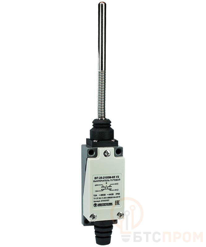 Выключатель путевой ВП 25-2109М-65 У2 1НО+1НЗ 3А IP65 рычаг пружинный с метал. наконечником безинерцион. 21х56мм Электротехник ET013197