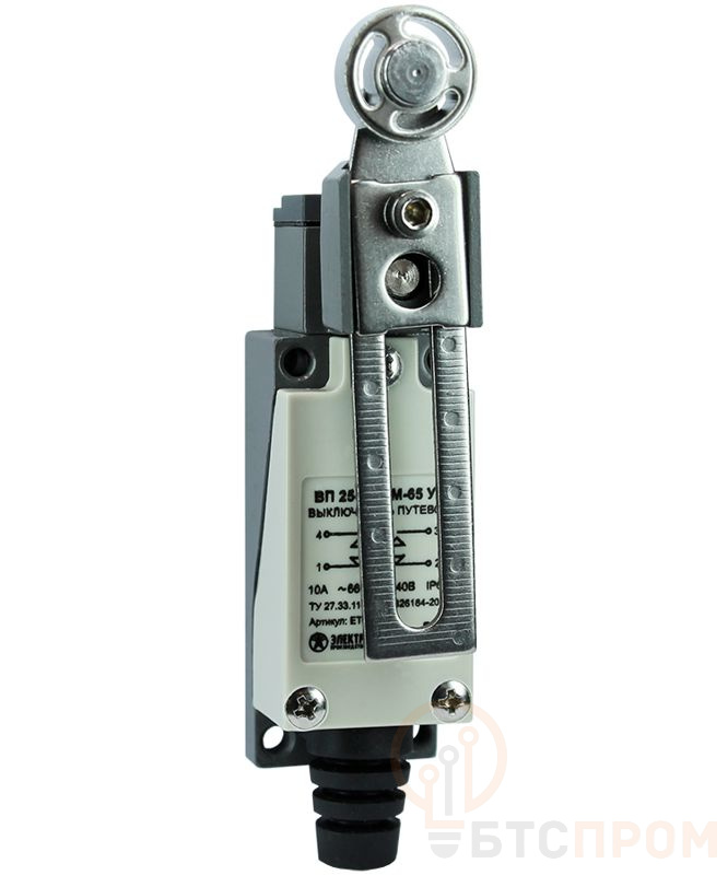 Выключатель путевой ВП 25-2143М-65 У2 1НО+1НЗ 3А IP65 рычаг со стальным роликом регулир. по длине безинерционный 21х56мм Электротехник ET007248