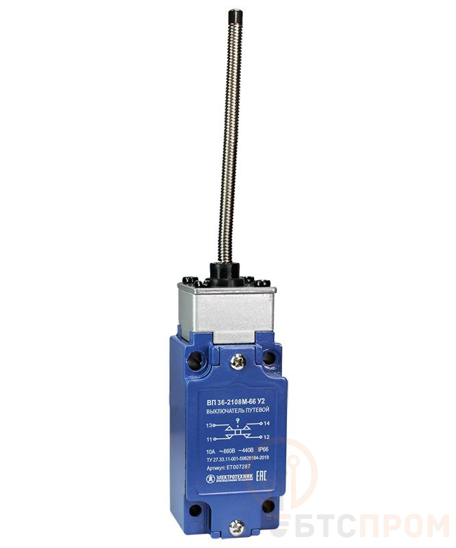Выключатель путевой ВП 36-2108М-66 У2 1НО+1НЗ 3А IP66 рычаг пружинный безинерционный 30х60мм без сальника Электротехник ET007287
