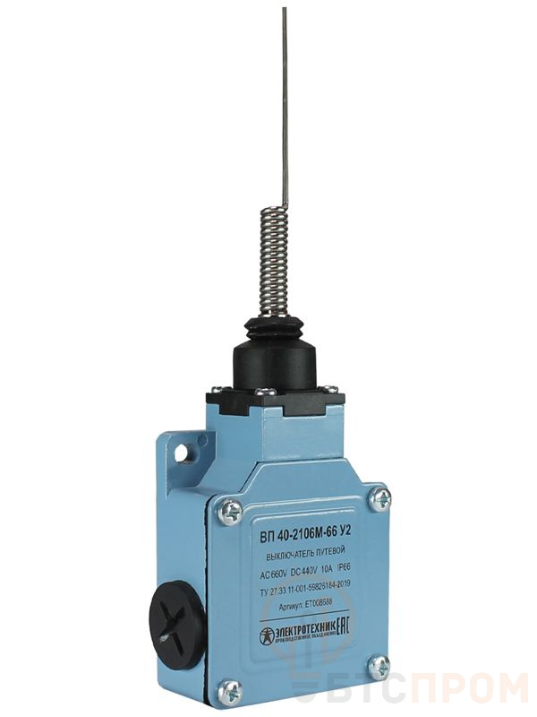 Выключатель путевой ВП 40-2106М-66 У2 1НО+1НЗ IP66 рычаг пружинный "кошачий ус" мгновенный без сальника Электротехник ET008688