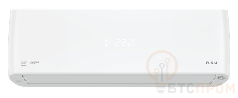 Все климатическое оборудование FUNAI создается в единой концепции Future and Air, которая является стратегической идеей бренда. Сутью концепции является создание для человека высокого качества его жизни, для чего необходимо наличие здорового и комфортного микроклимата по всем параметрам: чистота воздуха, его обновление и состав, влажность и температура.Все приборы FUNAI имеют реальные отличия от типовых аналогов, представленных на рынке. Модели кондиционеров серии EMPEROR SMART EYE Inverter воплощают в себе новейшие достижения науки, техники и технологий, тенденции дизайнерской мысли.Вдохновением для создания кондиционеров серии EMPEROR SMART EYE Inverter стал величественный и эффектный меч императора. Взгляд мудрого и могущественного повелителя, осматривающего свои владения, замечает каждое движение на своей территории. Способность видеть будущее помогает императору строить свою империю.Принципиально новая линейка FUNAI оснащена инновационной функцией SMART EYE: инфракрасный сенсор позволяет определять местоположение человека в помещении, и в зависимости от выбранной настройки кондиционер направляет поток воздуха на человека или мимо него, обеспечивая максимально комфортные условия. Встроенный супермощный ионизатор SMART Hi-Nano уничтожает вирусы и бактерии в воздухе, включая коронавирус. Он создает 1 000 000 ионов на 1 см<sup>3</sup>. Новейшая технология SMART Air Inspector самостоятельно выбирает оптимальный режим и поддерживает комфортную температуру, учитывая комплекс параметров, в том числе влажность воздуха в помещении.Функция SMART Air обеспечивает автоматическое управление воздушным потоком во всех направлениях, а благодаря функции SMART Feel вы всегда сможете отследить изменение температурного показателя в месте нахождения пользователя. Также предусмотрена технология самоочистки SMART ICE Clean, которая позволяет очистить теплообменник внутреннего и внешнего блоков путем замораживания.Данная сплит-система имеет супернизкий уровень шума внутреннего блока от 18 дБ(А). А для комфортного сна предусмотрена функция SMART Sleep с 4 специальными программами для создания наиболее комфортных условий для сна и отдыха. Индивидуальная настройка ночного режима обеспечивает крайне низкий уровень шума, отключаемую индикацию и экономию электроэнергии.Встроенный Wi-Fi-модуль позволяет управлять сплит-системой из любой точки земного шара.Внутренние блоки сплит-систем EMPEROR SMART EYE Inverter комплектуются 4 дополнительными (сменными) фильтрами SMART Ion.Для минимизации вибрации внешнего блока и существенного уменьшения уровня шума внешние блоки комплектуются виброопорами. Также предусмотрена шумоизоляция компрессора наружного блока , что снижает уровень шума, повышая комфорт при использовании сплит-систем FUNAI.