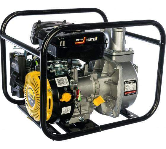 Тип двигателя 4-х тактный, одноцилиндр. Вес, кг 18 кг Бренд Huter Габариты упаковки 0.39 х 0.39 х 0.39 м Номинальная мощность двигателя, л.с. 2.8 Тип стартера Ручной Высота напора, м 30 Глубина всасывания, м 8 Вид топлива Бензин АИ-92 Тип мотопомпы центробежная, самовсасывающая Рабочий объем двигателя, см3 93 Скорость оборотов, об/мин 3800 Диаметр входного патрубка, мм/дюйм 40/1.5 Диаметр выходного патрубка, мм/дюйм 40/1.5 Макс. производительность, л/мин 300 Объем бака, л 1.6 Тип воды Чистая Масса, кг 17 Мотопомпа HUTER MP-40 – это компактный водяной насос, который может использоваться для водоснабжения, перекачки воды из бассейна или пруда, откачки воды из подвалов, полива садовых и огородных участков, тушения пожаров и других целей. Бензиновые мотопомпы отличаются высокой производительностью и автономностью поэтому также хорошо подходят для фермерских хозяйств и разных отраслей бизнеса. Четырехтактный двигатель мощностью 2,8 л.с., способен перекачивать 300 л/мин. Высота напора может достигать 30 м. Устройство может подавать воду с глубины до 8 м. Диаметр входного и выходного патрубка для данной модели 40 мм. Бензиновая мотопомпа комплектуется специальной металлической рамой, которая защищает агрегат от повреждений и обеспечивает ему хорошую устойчивость. Водяной насос HUTER MP-40 имеет компактные размеры, поэтому его удобно перевозить в автомобиле и переносить в руках. Воздушный фильтр, топливный кран и другие комплектующие имеют удобное расположение, что существенно упрощает техническое обслуживание и ремонт. Надежный стартер обеспечивает простой пуск двигателя при любых условиях.