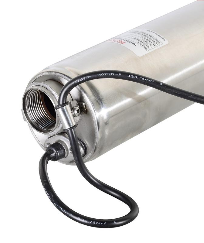 Насос выполнен из высококачественных материалов: корпус и рабочие колеса изготовлены из нержавеющей стали, что гарантирует долговечность и устойчивость к коррозии. Агрегат оснащен системой тепловой защиты, предохраняющей двигатель от перегрева при работе в интенсивном режиме.