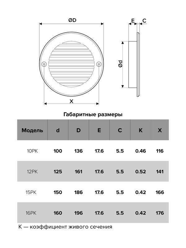 Для настенного или потолочного монтажа. Для декоративного оформления выходов приточных или вытяжных вентиляционных систем бытовых, общественных и промышленных зданий. Оборудованы монтажным фланцем для простого соединения с круглыми воздуховодами. Решетки имеют наклонные жалюзи.