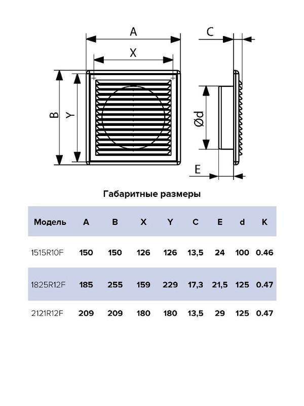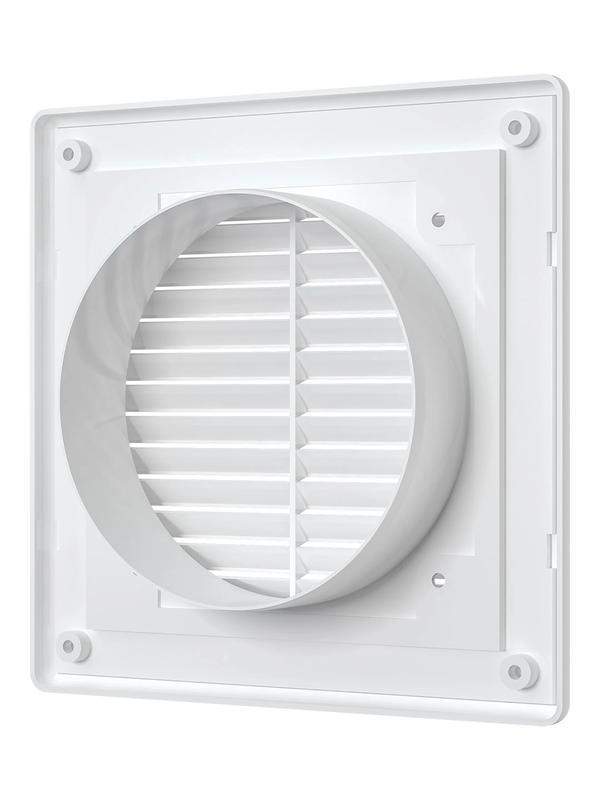 Решетка серии RF монтируется с круглым пластиковым воздуховодом при помощи фланца. Благодаря разъемной конструкции для обслуживания не требуется полный демонтаж, достаточно лишь отделить решетку от рамки. Крепление осуществляется с помощью шурупов. Имеет наклонные жалюзи, которые скрывают вентиляционное отверстие.