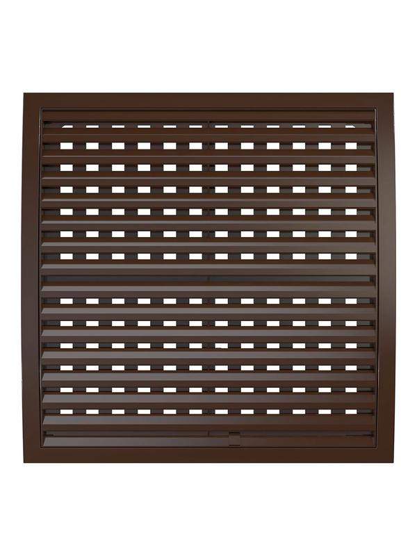 Разъемная решетка РРПН выпускается из ASA-пластика, стойкого к атмосферным осадкам и перепадам температуры. Снабжена механизмом регулирования расхода воздуха. При помощи флажка можно ограничить или перекрыть его приток или вытяжку. Состоит из четырех элементов, полностью разбирается. Доступна в сером, терракотовом, коричневом цветах и Ivory.
