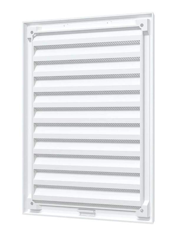 Решетка предназначена для использования в приточно-вытяжной системе вентиляции. Изготовлена из качественного пластика. Конструкция состоит из двух частей: рамы и жалюзи с пластиковой сеткой. Решетка разъединяется путем отщелкивания специального пластикового замочка с помощью отвертки. Это значительно упрощает ее ревизию.