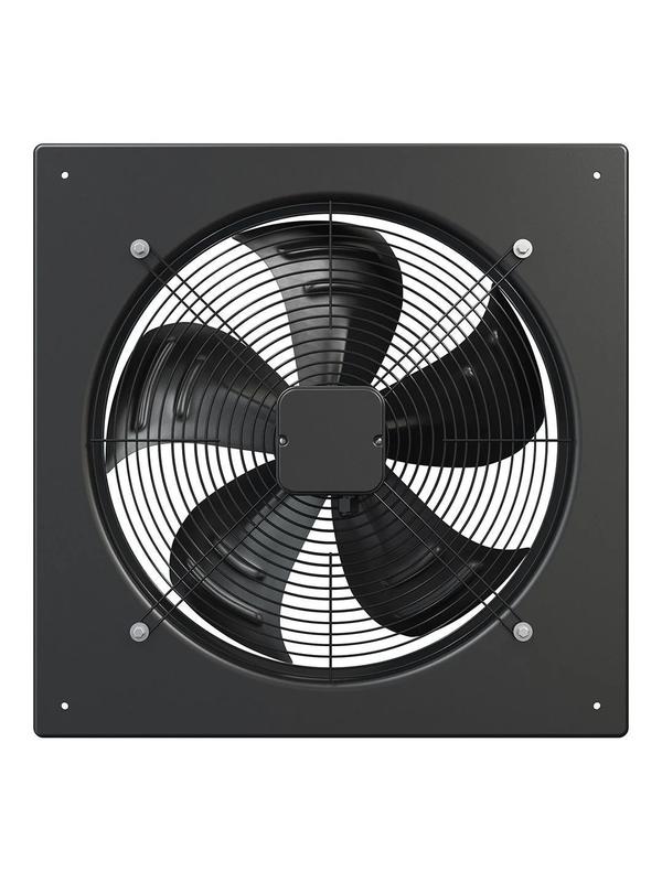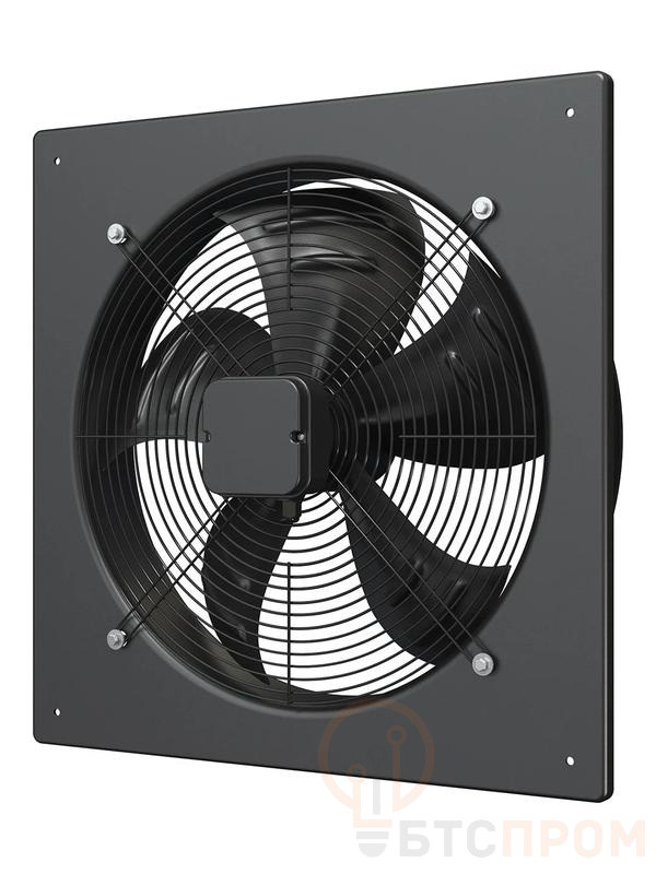 Осевой накладной вентилятор низкого давления в стальном корпусе, покрытом полимерной эмалью черного цвета. Предназначен для приточно-вытяжных систем вентиляции, а также для использования в холодильной технике для охлаждения компрессорно-конденсаторных блоков. В зависимости от способа установки может работать как на приток, так и на вытяжку воздуха. Асинхронный четырехполюсной двигатель на шарикоподшипниках имеет встроенную тепловую защиту. Монтаж устройства к несущей конструкции (стена, потолок) осуществляется с помощью квадратной пластины. Для соединения с круглыми воздуховодами соответствующего диаметра предусмотрен фланец. Степень защиты оболочки электрооборудования от проникновения твердых частиц и воды — IPX4.