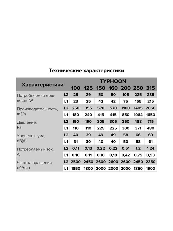 Канальный осевой вентилятор смешанного типа в корпусе из пластика. Предназначен для приточно-вытяжных систем вентиляции промышленных, общественных и жилых зданий. Имеет разборную конструкцию, что упрощает обслуживание: съемный центральный блок с двигателем, крыльчаткой и клеммной коробкой крепится к боковым патрубкам пластиковыми хомутами. В TYPHOON 125 2SP устанавливается двухскоростной однофазный двигатель на шарикоподшипниках с длительным сроком службы, встроенной тепловой защитой и автоматическим перезапуском. Асимметричная форма клеммной коробки облегчает подключение сетевого провода. Вентилятор имеет две скорости работы, выбор скорости осуществляется при подключении питания к клеммам, либо с помощью кнопки (входит в комплект, устанавливается самостоятельно по желанию пользователя). Устройство подходит для горизонтального и вертикального монтажа, крепление к поверхности осуществляется с помощью саморезов.