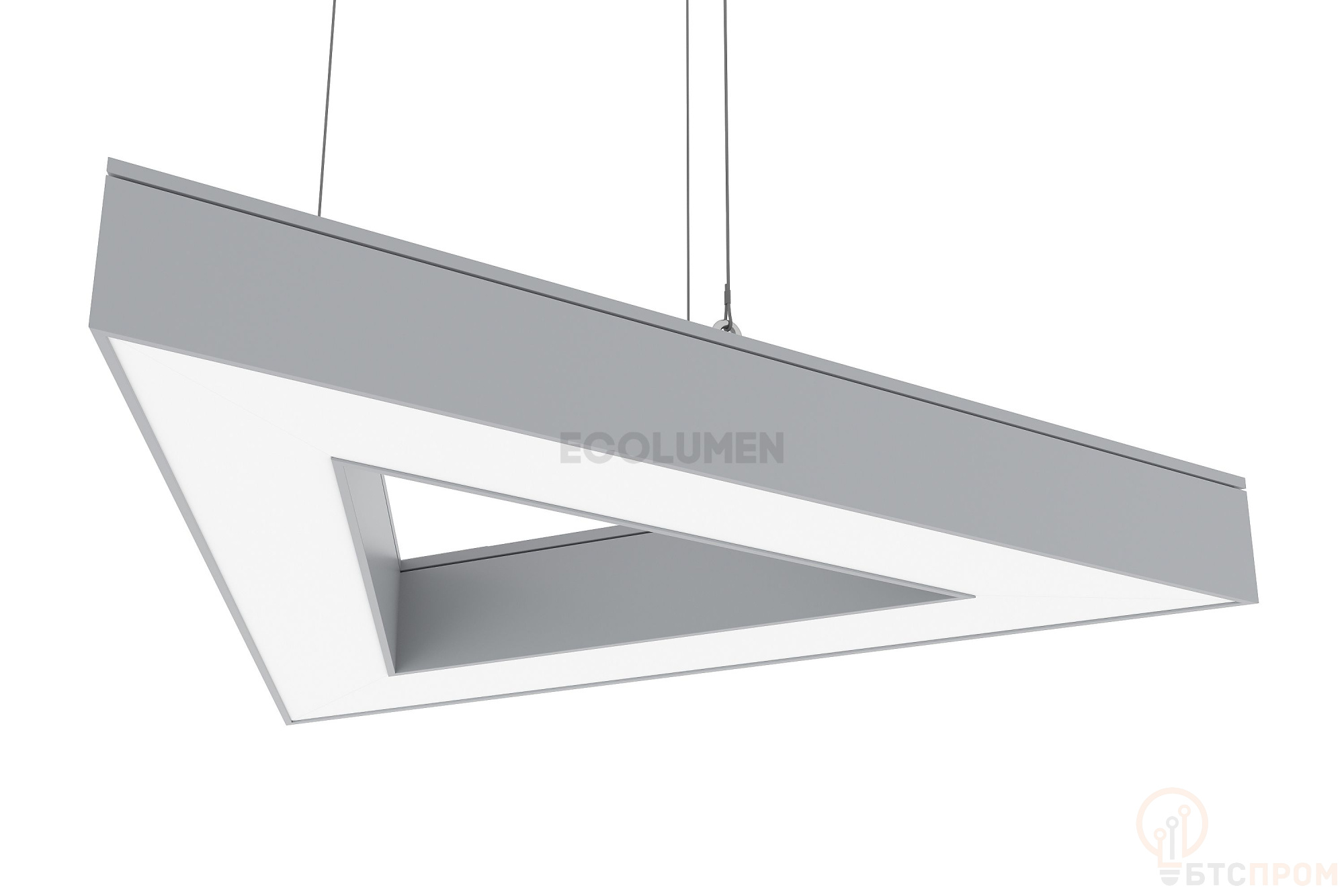 «ECOLUMEN-RETAIL-VERTEX» - светодиодные светильники серии «DESIGN» из алюминиевого профиля сечением 60х60мм, собранного в форме треугольной фигуры. Свое название изделие получило от слова «VERTEX», что в переводе означает «Вершина». Светильники «Эколюмен-Вертекс» используются для освещения помещений с потребностью в дизайнерском свете. Это может быть как коммерческий объект, так и современная квартира в стиле лофт. Форма светильников позволяет собирать их в различные фигуры, парящие в воздухе на подвесах либо размещать непосредственно на потолке или стенах. В ассортименте производителя кроме треугольных конструкций есть и светильники других форм: крест, трехлучевая звезда, квадрат, прямоугольник, ломаная линия и др. Светильники изготавливаются с разным световым потоком от 3000 до 20000 Лм и могут использоваться для декоративного освещения или в качестве основных источников освещения. Дизайнерские светильники «Ритейл-Вертекс» изготавливаются различного размера в виде треугольников со сторонами от 300мм до 3 метров. Каждое изделие комплектуются подвесами длиной 2 метра, клипсами для накладного монтажа и окрашиваются в любой цвет по таблице RAL. Все светильники соответствуют требованиям ТР ТС 004/2011 «О безопасности низковольтного оборудования» и ТР ТС 020/2011 «Электромагнитной совместимости технических средств», подтвержденные сертификатом ТС.