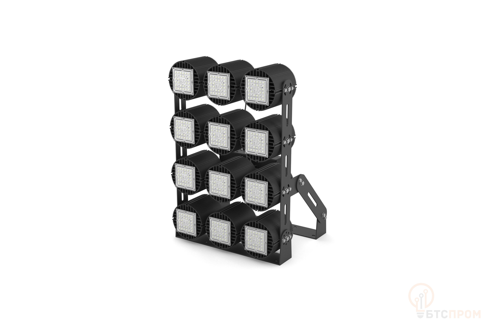 Модульная модель светильника позволяет получить прожекторы мощностью до 2кВт со световым потоком до 270000Лм.