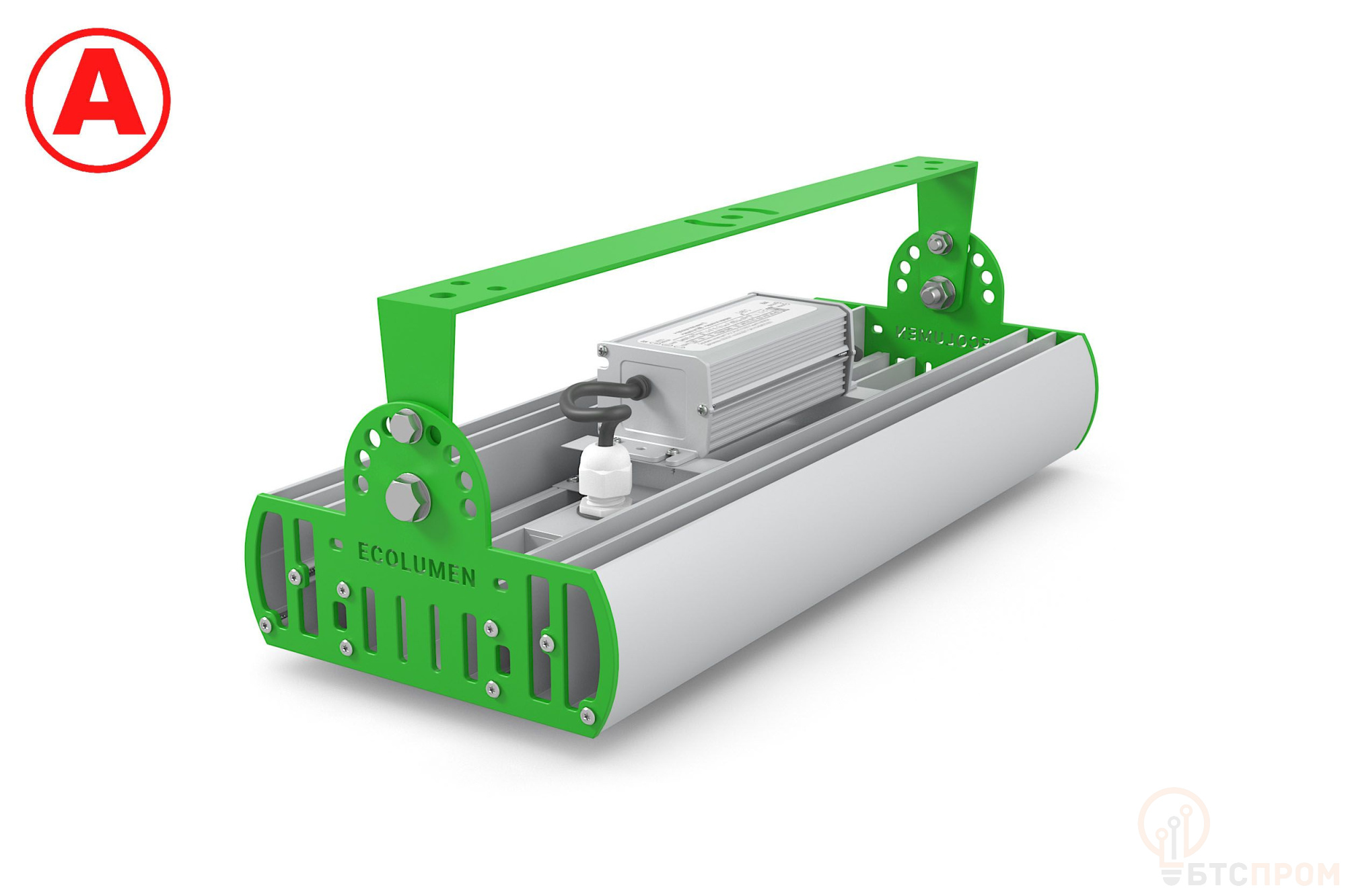 «Эколюмен ALBL-БАП» - промышленные светодиодные светильники с вторичной оптикой, оснащенные блоками аварийного питания. Изготовлены из анодированного алюминия с защитой от скачков напряжения до 420В и импульсных перенапряжений до 6000В. Встроенный аккумулятор позволяет светильнику работать автономно в случае аварийного отключения питания. В зависимости от модели бесперебойного блока питания светильник способен функционировать автономно в течение 1-3 часов. В штатном режиме это обычный светильник общего или локального освещения.