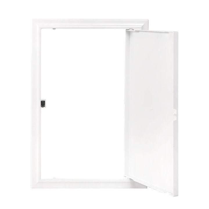 Нажимные ревизионные люки применяются для обеспечения оперативного доступа к установленному в нише сантехническому, электротехническому и иному оборудованию. Изготовлены из АБС пластика белого цвета. Открытие дверцы производится нажатием на замок. Дверца фиксируется в закрытом состоянии при помощи нажимного замка. Габаритный размер, указанный в наименовании - это габарит внутренней части люка, монтируемой в нишу.