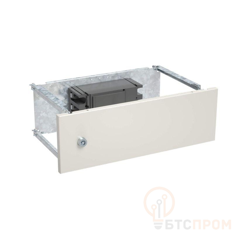 Комплект элементов с внешними секционными дверьми для горизонтальной установки 4-полюсного автоматического выключателя АВВ серии Т5 втычного исполнения с моторным приводом для ширины шкафа 600 мм, высота блока 250 мм.