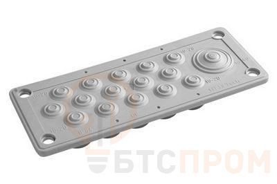 Мембранный кабельный ввод FL21 изготавливается из термопластичного эластомера, категория стойкости к горению – ПВ-0 (V-0), цвет RAL7035. Диапазон рабочих температур – от -40 до +130 °С, IP54, 16 отверстий.