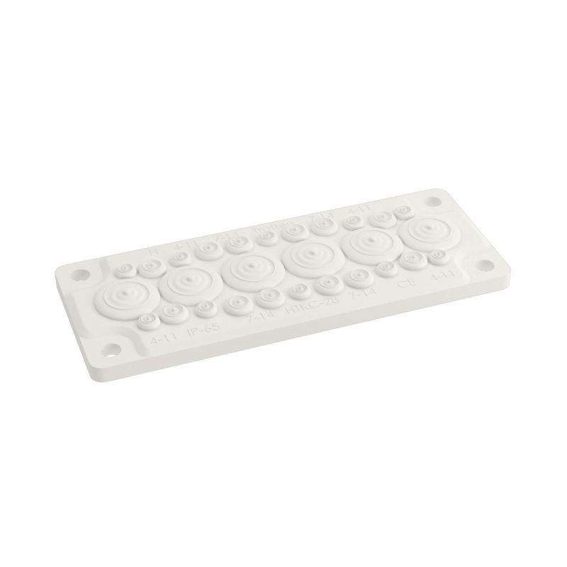 Мембранный кабельный ввод FL21 изготавливается из термопластичного эластомера, категория стойкости к горению – ПВ-0 (V-0), цвет RAL7035. Диапазон рабочих температур – от -40 до +130 °С, IP65, 28 отверстий.