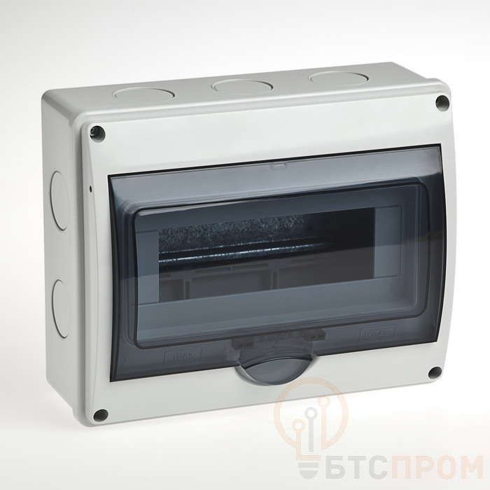 Бокс ОП Тусо 11мод. (4в) IP65 сер./дым. двер. Рувинил 69011 – щитовое оборудование для модульных устройств. Габариты: 250 х 200 х 107 мм. Изготовлен из высокопрочного пластика (IP65). Крышка прозрачная, бокс без монтажной панели, светло-серого цвета. Предусмотрен монтаж 11 модулей на дин-рейку. Поставщик: Ruvinil.