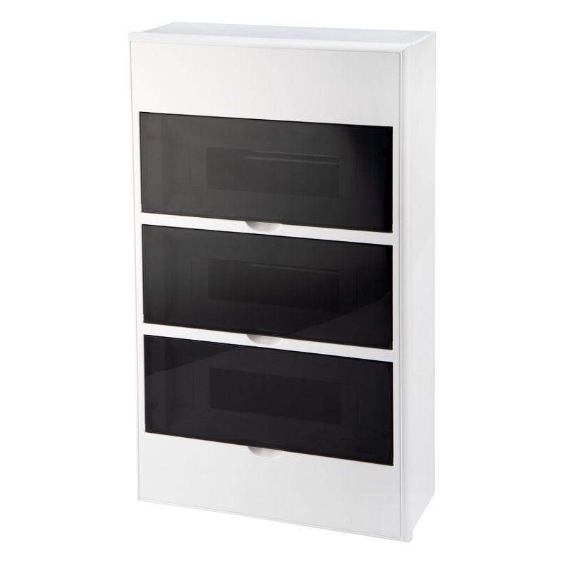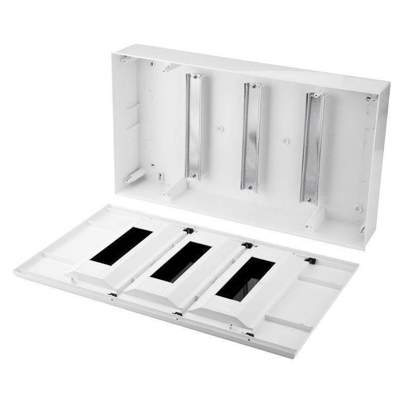 Бокс пластиковый ЩРН-П IP41 предназначен для установки модульных устройств при распределении электроэнергии до 400 В в квартирах, офисах, жилых, муниципальных и технических помещениях. Современный дизайн позволяет устанавливать распределительный щиток в любое пространство. Корпус выполнен из надежного и долговечного материала высокого качества – ударопрочного АБС-пластика. Прозрачная дверца изготовлена из поликарбоната. Пространство внутренней части корпуса увеличено для удобного монтажа оборудования. Изделие соответствует требованиям пожарной безопасности и изготовлено из материалов, которые не поддерживают горение. Произведено в Европе в соответствии со всеми стандартами безопасности (ГОСТ 14254 - 2015 и IEC 60529:2013). В комплектацию входят: стальная DIN-рейка (для крепления на ней различных модульных устройств и принадлежностей внутри щита), суппорт для шин, маркировочная лента для модулей, знак «Молния» и инструкция по установке.