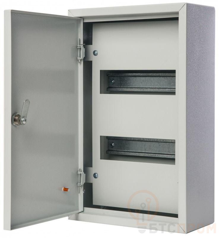 Щит распределительный серии ЩРН Dekraft; навесной; номинальный ток до 125 А; исполнение – 18 мод. х 18 мм, 2 ряда; ВхШхГ - 400х250х120 мм; материал – сталь; цвет - серый (RAL 7035); степень защиты - IP31. Щиты ЩРН имеют встроенные DIN-рейки для модульной аппаратуры, элементы крепления шин N и PE, болты заземления на дверце и на корпусе, дверь с замком и ключом. Доступ к токопроводящим частям закрыт съемной фальшпанелью. Ввод кабелей для всех щитов осуществляется сверху или снизу.