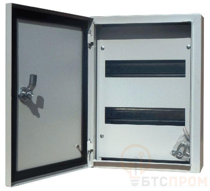 Щит распределительный серии ЩРН Dekraft; навесной; номинальный ток до 125 А; исполнение – 24 мод. х 18 мм, 2 ряда; ВхШхГ - 400х300х120 мм; материал – сталь; цвет - серый (RAL 7035); степень защиты – IP54. Щиты ЩРН имеют встроенные DIN-рейки для модульной аппаратуры, элементы крепления шин N и PE, болты заземления на дверце и на корпусе, дверь с замком и ключом. Доступ к токопроводящим частям закрыт съемной фальшпанелью. Ввод кабелей для всех щитов осуществляется сверху или снизу.