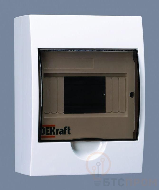 Корпус пластиковый навесной для электрических аппаратов серии ЩРН-П IP41 используют для установки в них модульной защитной аппаратуры. Дизайн корпуса имеет элегантные и скругленные формы, как и дверца, ее цвет темное органическое стекло. Фронтальные части корпуса, дверца, основание корпуса изготавливаются из самозатухающего ABS-пластика. Корпус имеет штампованные вводы для кабелей с разных сторон, и расстояния до точек крепления указаны сзади. Корпус является встраиваемым, имеет 1 черную DIN-рейку и 6 модулей (18 мм) для установки устройств, изолированный держатель для шинок, шинки N и PE. Дверца фиксируется в верхнем положении. Щиток на 100% совместим с модульным оборудованием Dekraft и Systeme Electric.