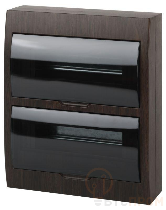 Двухъярусный распределительный навесной щит на 24 модуля ЭРА ЩРН-П-24 BOXF в цвете темный дуб, с тонированной дверцей. Пластиковый распределительный корпус специальной серии ЭРА ECO VILLAGE - идеальный вариант щитков для загородного жилья и объектов деревянного строительства. Эстетично вписывается в интерьер загородных домов, дач, шале. Защита от влаги и пыли - IP41. Тип установки - навесной. Щит изготовлен из ABS-пластика, устойчивого к воздействию ультрафиолета. Успешно эксплуатируется при температурах от -20 до +40 градусов. Боксы ЭРА ECO VILLAGE устанавливаются внутри жилых помещений, под навесом. В комплект входит набор для монтажа, шина N, шина PE, маркировочная лента.