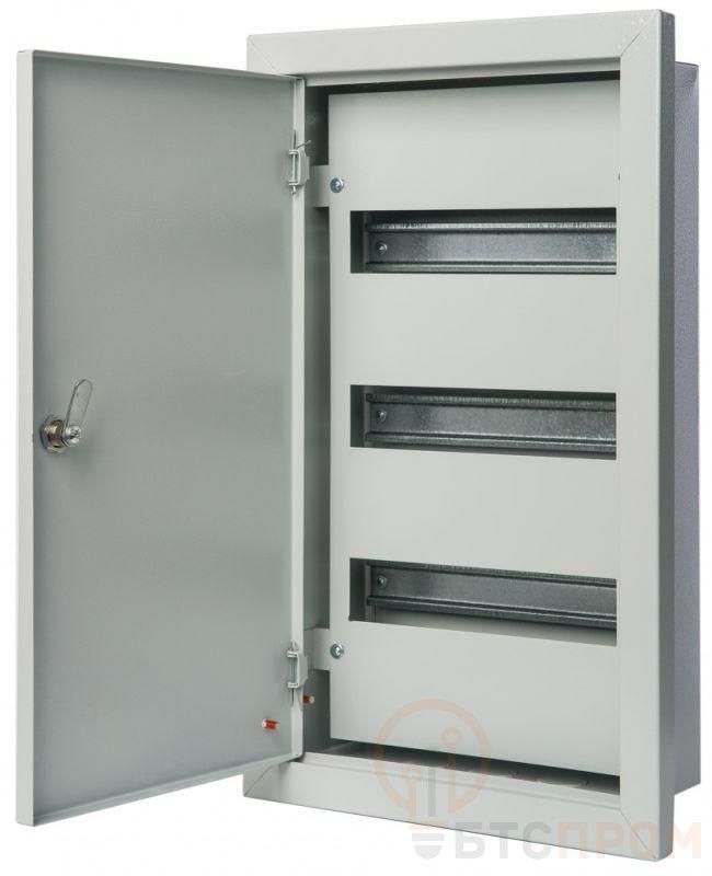 Щит распределительный серии ЩРВ Dekraft; встраиваемый; номинальный ток до 125 А; исполнение – 36 мод. х 18 мм, 3 ряда; ВхШхГ - 550х333х120 мм; материал – сталь; цвет - серый (RAL 7035); степень защиты - IP31. Щиты ЩРВ имеют встроенные DIN-рейки для модульной аппаратуры, элементы крепления шин N и PE, болты заземления на дверце и на корпусе, дверь с замком и ключом. Доступ к токопроводящим частям закрыт съемной фальшпанелью. Ввод кабелей для всех щитов осуществляется сверху или снизу.