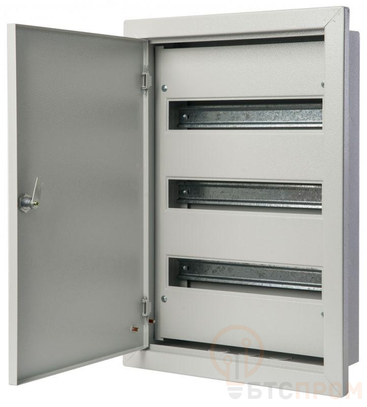Щит распределительный серии ЩРВ Dekraft; встраиваемый; номинальный ток до 125 А; исполнение – 48 мод. х 18 мм, 4 ряда; ВхШхГ - 680х300х120 мм; материал – сталь; цвет - серый (RAL 7035); степень защиты - IP31. Щиты ЩРВ имеют встроенные DIN-рейки для модульной аппаратуры, элементы крепления шин N и PE, болты заземления на дверце и на корпусе, дверь с замком и ключом. Доступ к токопроводящим частям закрыт съемной фальшпанелью. Ввод кабелей для всех щитов осуществляется сверху или снизу.
