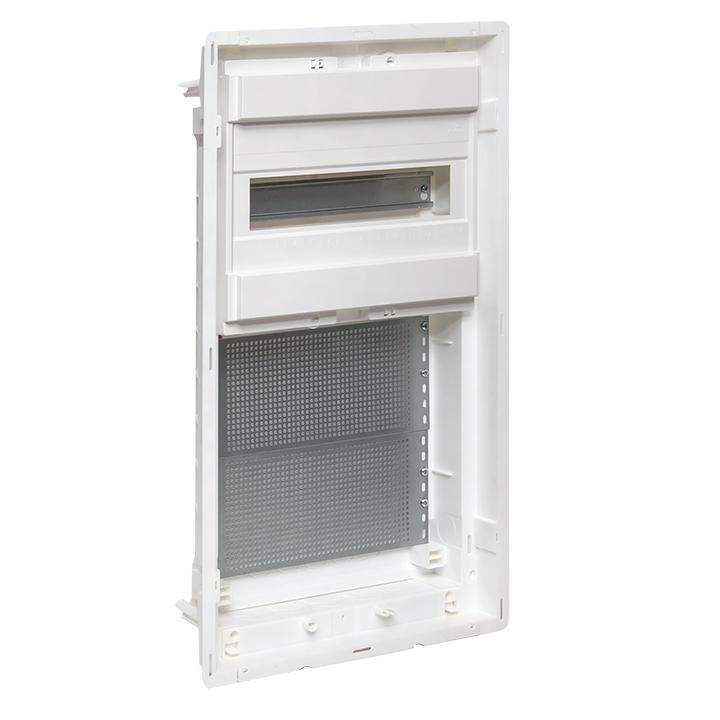 Корпуса пластиковые серии «Nova» предназначены для сборки силовых, слаботочных и комбинированных щитов. На DIN-рейки устанавливается модульное оборудование. На монтажные платы – антенные разветвители, Wi-Fi роутеры, патч-панели и иное слаботочное оборудование. Щиты устанавливаются как в бетонные и кирпичные стены, так и в гипсокартон, монтажные комплекты для установки в гипсокартон входят в комплектацию оснований щитов либо в комплектацию щитов в сборе. Двери щитов можно выбрать их разных материалов – пластик, металл или металл с перфорацией. Также доступны дополнительные аксессуары, необходимые для установки мультимедийного оборудования и существенно упрощающих монтаж щитов. Есть возможность приобрести как отдельно основание щита и дверь, так и основание с дверью в комплекте в одной коробке. Основные преимущества: съемные шасси с din-рейками, съемные кабельные фланцы, гребенка для фиксации входящих проводников, регулировка дверей по глубине, современный минималистичный дизайн