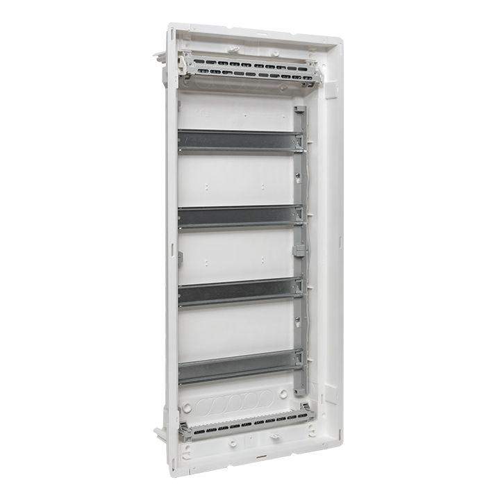 Корпуса пластиковые серии «Nova» предназначены для сборки силовых, слаботочных и комбинированных щитов. На DIN-рейки устанавливается модульное оборудование. На монтажные платы – антенные разветвители, Wi-Fi роутеры, патч-панели и иное слаботочное оборудование. Щиты устанавливаются как в бетонные и кирпичные стены, так и в гипсокартон, монтажные комплекты для установки в гипсокартон входят в комплектацию оснований щитов либо в комплектацию щитов в сборе. Двери щитов можно выбрать их разных материалов – пластик, металл или металл с перфорацией. Также доступны дополнительные аксессуары, необходимые для установки мультимедийного оборудования и существенно упрощающих монтаж щитов. Есть возможность приобрести как отдельно основание щита и дверь, так и основание с дверью в комплекте в одной коробке. Основные преимущества: съемные шасси с din-рейками, съемные кабельные фланцы, гребенка для фиксации входящих проводников, регулировка дверей по глубине, современный минималистичный дизайн