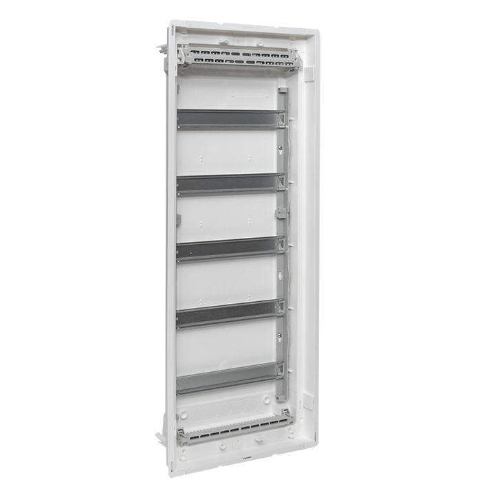 Корпуса пластиковые серии «Nova» предназначены для сборки силовых, слаботочных и комбинированных щитов. На DIN-рейки устанавливается модульное оборудование. На монтажные платы – антенные разветвители, Wi-Fi роутеры, патч-панели и иное слаботочное оборудование. Щиты устанавливаются как в бетонные и кирпичные стены, так и в гипсокартон, монтажные комплекты для установки в гипсокартон входят в комплектацию оснований щитов либо в комплектацию щитов в сборе. Двери щитов можно выбрать их разных материалов – пластик, металл или металл с перфорацией. Также доступны дополнительные аксессуары, необходимые для установки мультимедийного оборудования и существенно упрощающих монтаж щитов. Есть возможность приобрести как отдельно основание щита и дверь, так и основание с дверью в комплекте в одной коробке. Основные преимущества: съемные шасси с din-рейками, съемные кабельные фланцы, гребенка для фиксации входящих проводников, регулировка дверей по глубине, современный минималистичный дизайн