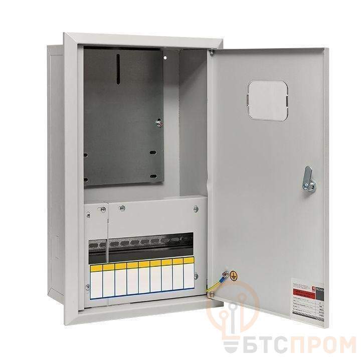 Элемент щитового оборудования. Встраиваемый, с дверцей и замком. Изготовлен из металлического сплава, серого цвета. Размеры: 540 х 340 х 160 мм. Защищен от проникновения пыли и вертикальных капель (IP31). Возможно подключение 12 модулей.