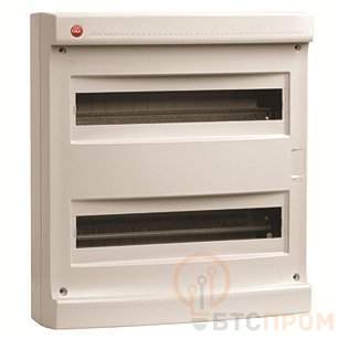 Настенный модульный щиток предназначен для монтажа в жилых и административных помещениях для установки автоматических выключателей любых производителей: таймеров, устройств защитного отключения и управления освещением и т.д. Щиток имеет оцинкованную DIN-рейку и суппорт, заглушки для пустых модулей, сборочные винты и заглушки для них, самоклеящуюся этикетку для маркировки цепей. Преперфорированные отверстия и насечки на задней стенке обеспечивают точное соединение с пластиковыми трубами и обеспечивают легкий монтаж. Сборочные винты идут в комплекте. Количество модулей - 36 (2х18). Параметры щитка: ширина- 412 мм, высота - 454 мм, глубина - 138 мм. Материал - термостойкий и ударопрочный пластик. Цвет - серый, RAL 7035.
