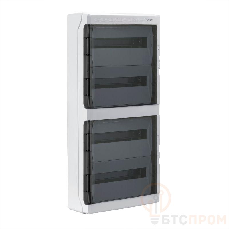 Настенный модульный щиток с прозрачной затемненной дверцей. Предназначен для монтажа в жилых и административных помещениях для установки автоматических выключателей любых производителей: таймеров, устройств защитного отключения и управления освещением и т.д. В комплект поставки входят: клеммные блоки 4 x (11x16мм2 + 11x24мм2), ручка на дверце, оцинкованная DIN-рейка, заглушки для пустых модулей, заглушки на пазы для крепления к стене, сборочные винты. Степень пыле- и влагозащиты IP 65. Ударопрочность корпуса IK09. Количество модулей - 72. Параметры щитка: ширина - 432 мм, высота - 879 мм, глубина - 160 мм. Материал - термостойкий пластик. Цвет - серый..